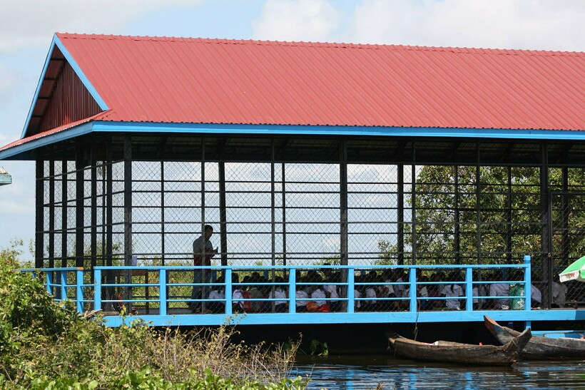 Плавающие школы есть не только в Камбодже, но в этом маленьком государстве есть целая деревня на воде. В деревушке Компонг Луонг есть и жилые дома, и магазины, и школа.