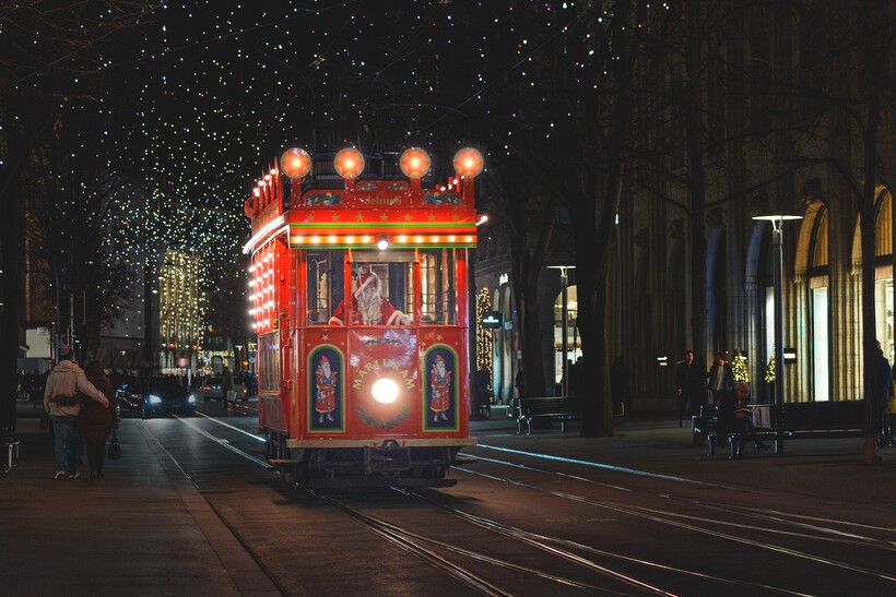 Уже с средины декабря в центре крупнейшего швейцарского города начинает пахнуть глинтвейном и жареными каштанами. Эти атрибуты неизменны в Цюрихе, как для нас мандарины. Когда уже все начинает дышать Рождеством, из-за угла показывается волшебный трамвай. Его запускают для того, чтобы покатать детей и подарить городу атмосферу праздника. Управляет трамваем не кто иной, как Санта-Клаус.