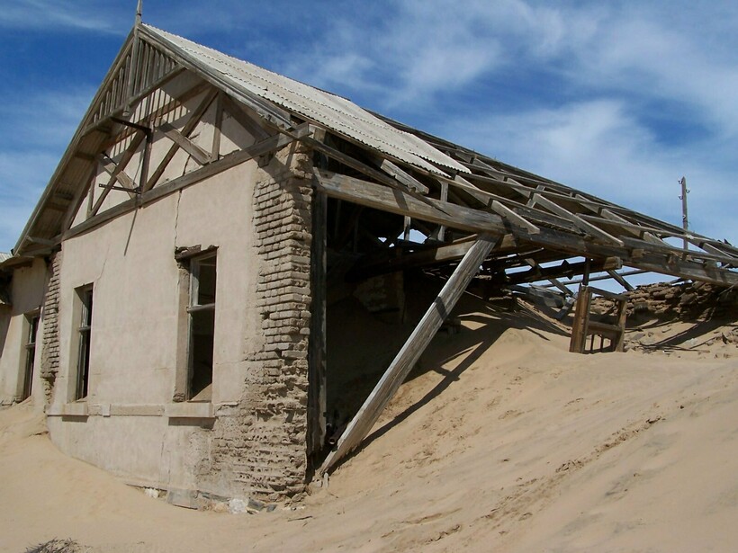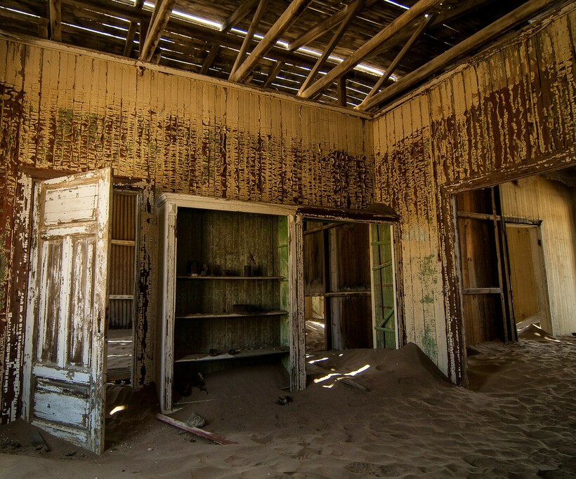 Дома остались открытыми всем песчаным бурям, и то, что осталось от процветающего столетие назад города, служит фоном для сюрреалистичных фотосессий.