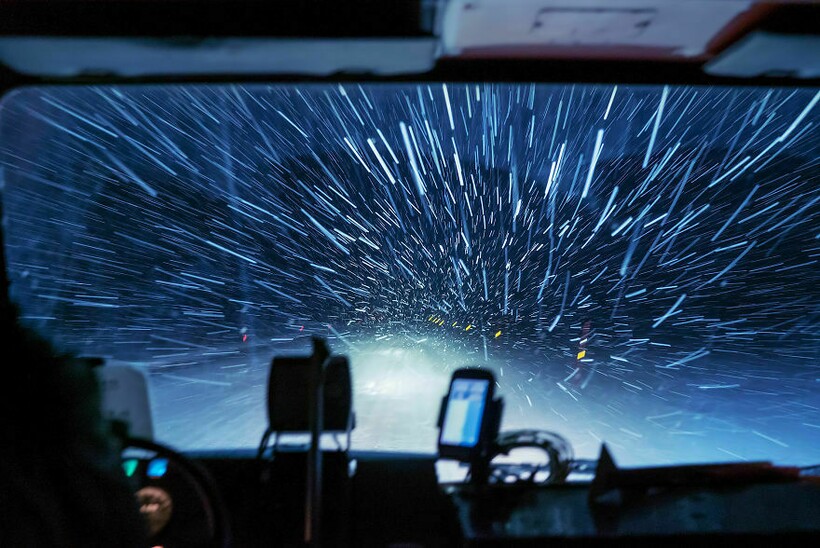 Снежная буря из окна вездехода ― машины на гусеницах: только на таком транспорте можно ездить по снегу