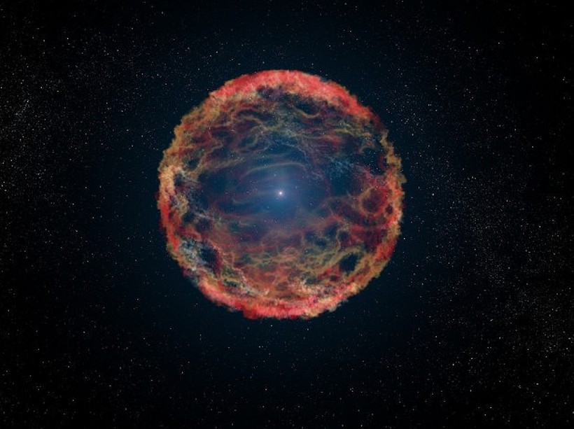 После взрыва на месте звезды остается расширяющаяся туманность — выброшенная в космос газовая оболочка.