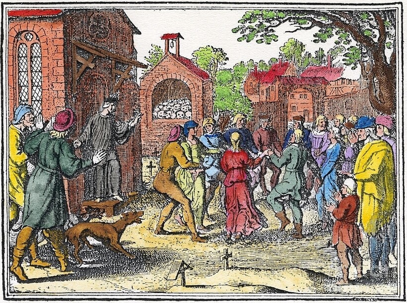 Летописцы разных стран и национальностей писали в своих дневниках, что порой люди пускались в странный танец, но они не были рады, наоборот, их лица были искажены гримасами боли и усталости, но они продолжали неистово танцевать, пока не падали без сознания. Впервые такая запись была найдена в Германии, в городе Десау, и датировалась 1021 годом. Никто не понял, отчего люди пустились в пляс, и почему одни «заразились» танцем, присоединившись к толпе, а другие люди могли спокойно пройти мимо. Тогда абсолютно все люди верили в Бога и бесов, а также их силы, потому танцующих людей связали и подвергли экзорцизму. До 1237 года эта история была единичной, пока не повторилась вновь.