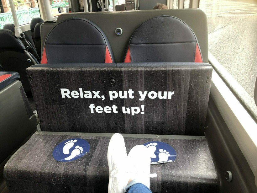Об удобстве пассажиров данного транспорта хорошо позаботились. Свободные сиденья здесь легко превращаются в подставку для уставших ног — достаточно просто поднять сиденье. А если кому-то понадобится присесть — опустить обратно.