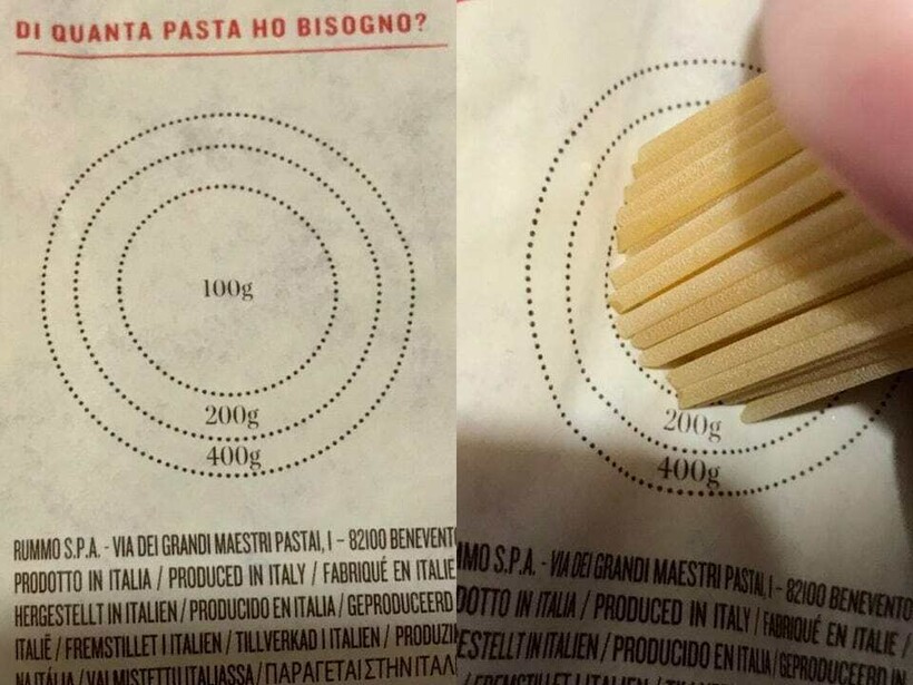 На упаковке с пастой есть специальное место для измерения необходимого для приготовления количества продукта.