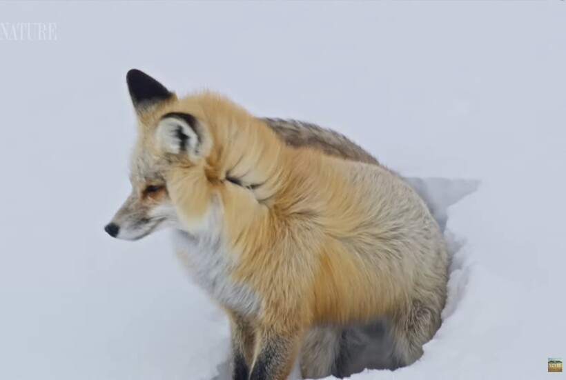 Лисы обладают невероятным слухом и могут обнаружить добычу под слоем метрового снега. Если снега больше, то лисам могут помогать другие звери, например, эти бизоны. Малейший шорох под настом — и лиса будет готова к атаке. Конечно, могут случаться и промахи — с первого раза лиса не поймала добычу, но это дело опыта. Считается, что лисам нет равных в технике по ловле невидимой добычи, и у зоологов есть гипотеза на этот счет. Лиса не только может слышать свою крошечную добычу, но и определять, насколько она глубоко под снегом и в каком точно месте.