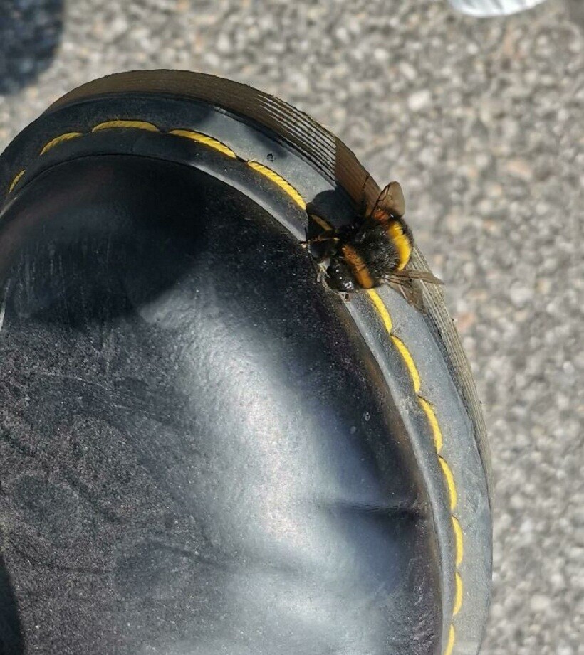 Похоже, шмель решил замаскироваться на подошве ботинка