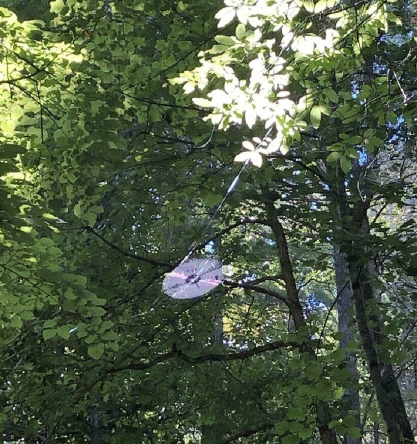 «Компакт-диск» на ветвях деревьев — не что иное, как паутина, на которую попали лучи солнца