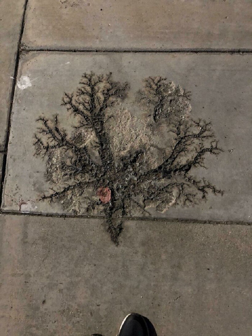Странный узор на тротуаре, вероятно, остался после удара молнии