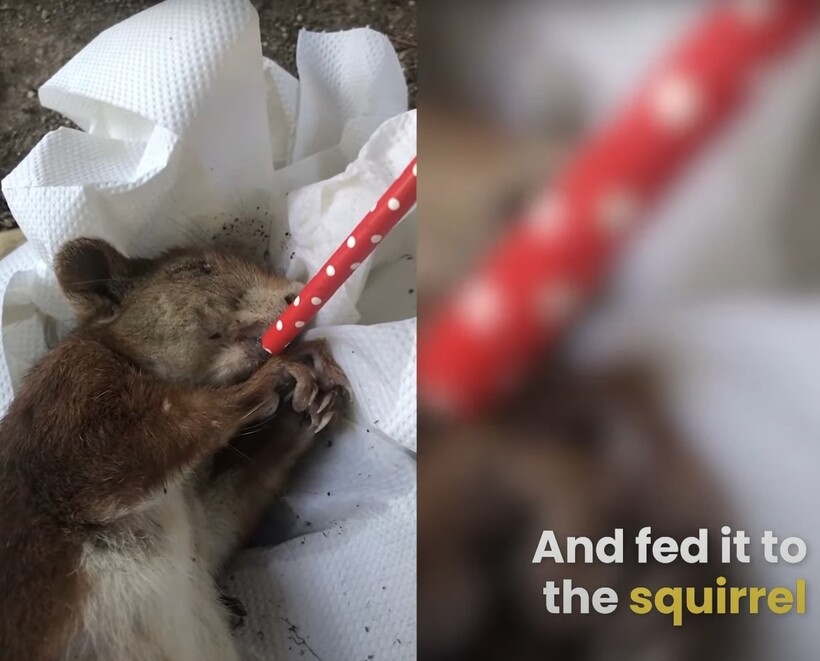 Чтобы спасти жизнь белке, мужчине понадобилось уделить ей немного времени и найти стакан сладкой воды.