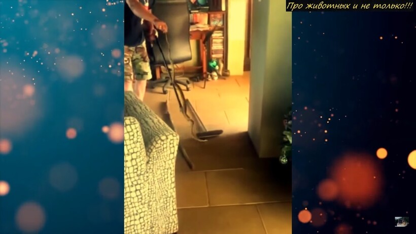 Из красиво украшенной елки, торчала голова метрового бумсланга. Смертельно опасная змея уютно устроилась между украшениями и спокойно смотрела сверху на хозяев дома. Бумсланг опережает по ядовитости мамбу и кобру, а его укус может стать фатальным. Этот вид змеи отличается излишней пугливостью, а его яд может вызвать кровотечения и даже в небольших количествах очень опасен. Трейдер британского фондового рынка Роб смело шагнул вперед, чтобы получше рассмотреть животное, и после быстрого поиска в Google понял, что это бумсланг. Семья, переехавшая в Африку 15 лет назад, позвонила ловцу змей, который велел им держать рептилию на дереве. Мужчина также посоветовал им каждый раз, когда животное попытается соскользнуть вниз, шуршать подарками, чтобы заставить змею лезть наверх. В другом материале мы рассказали, что случится, если одна ядовитая змея укусит другую.