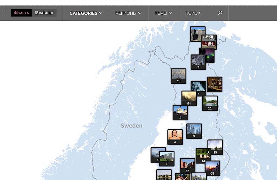 Гид состоит из нескольких сотен предложений и мест, рекомендованных к посещению, разделенных на категории, например: сезонность и пункт назначения. Несмотря на обилие информации пользоваться платформой невероятно просто: гид создан в виде карты Финляндии, в определенных частях которой размещены «иконки» с краткими фактами и ссылками на более подробную информацию. Пользователь также может выбрать тему поездки, например, оздоровление, и получить исчерпывающие данные о каждом примечательном SPA-курорте в Финляндии, при этом выбранные места можно положить в «корзину».