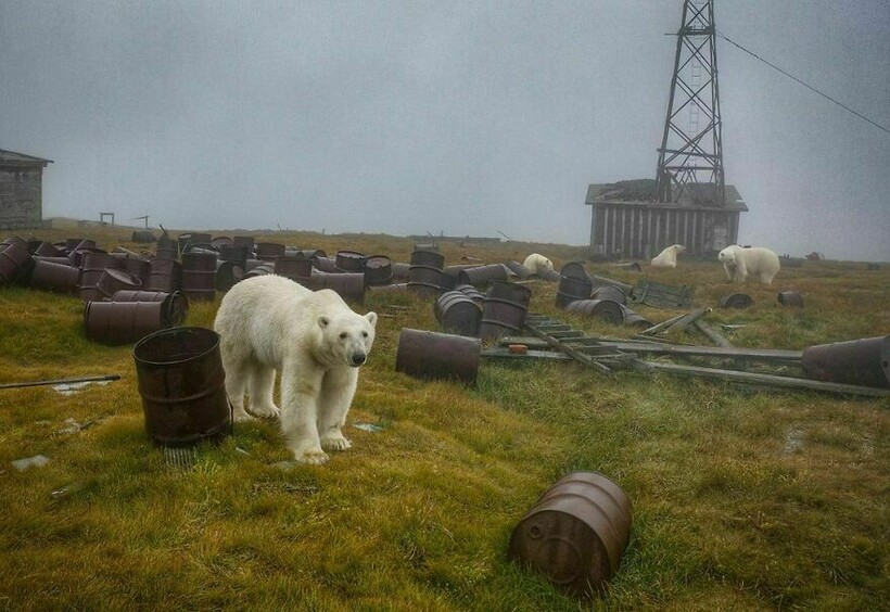 Именно здесь Дмитрий и увидел полярных медведей в непривычной обстановке