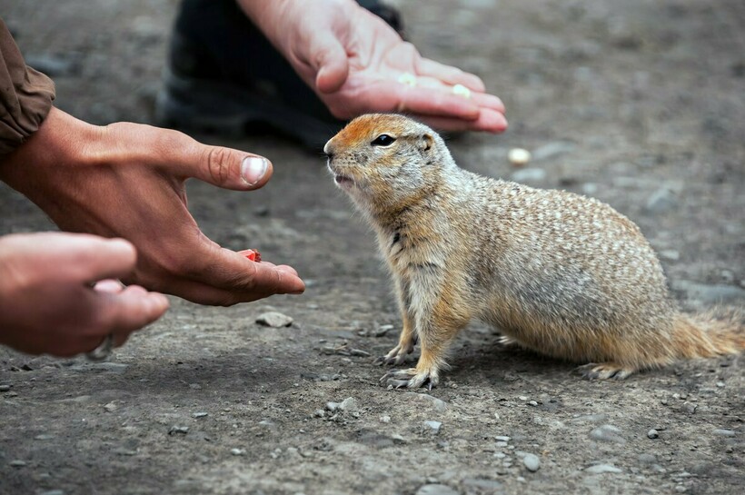 Именно эту цель и преследуют суслики, давно понявшие, что у «двуногих» всегда есть чем поживиться. Евражки просто подходят к остановившимся на привал людям и смотрят на них. Сентиментальные туристы угощают пушистиков едой, параллельно снимая видео для социальных сетей. А в это время сусликов прибывает всё больше и больше. И вот путешественники уже остались практически без съестных припасов.