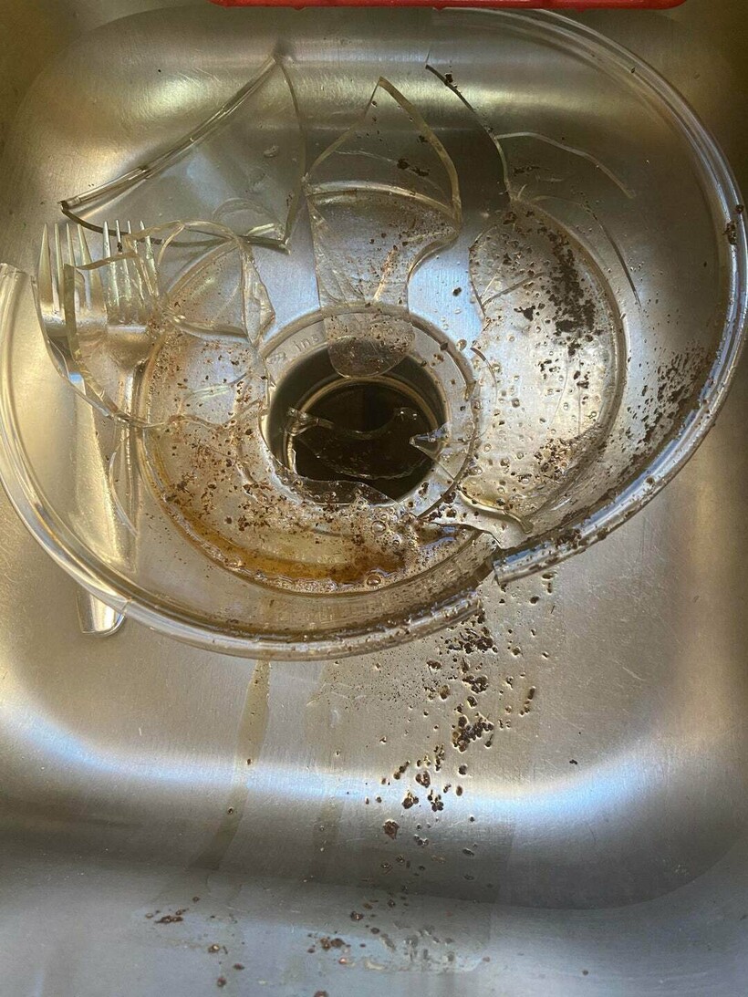 Вот что случится, если поспешить вымыть стеклянную посуду сразу после духовки, не дав ей остыть. От разницы температур стекло мгновенно потрескается.