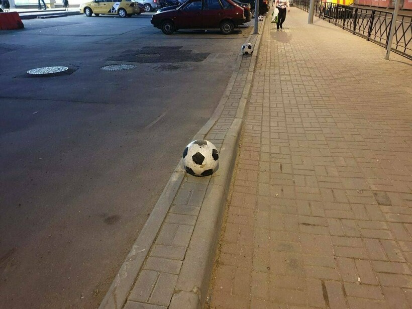 Бетонные сферы в городе выкрасили под футбольные мячи
