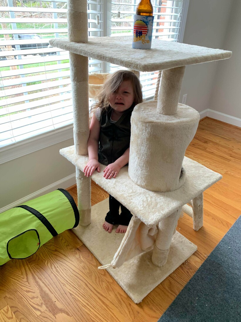 Вот только размеры подвели, и она застряла в кошачьем домике.