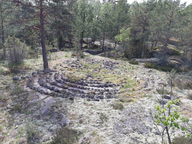 На нескольких островах экспедиция нашла непонятные каменные лабиринты. Спираль обычно небольшая, 5-метрового радиуса, выход из лабиринта показывает точно на север или вглубь острова и имеет от 9 до 15 окружностей. Говорят, что балтийские моряки бродили по этим лабиринтам вплоть до 1930-х годов, но зачем? Есть версия, чтобы злых духов запутать, кто-то говорил, что так заведено (любопытно, кем и когда?). Интересно, что похожие лабиринты встречаются еще с языческих времен, их можно найти в христианских храмах перед алтарем, на мельницах и даже рыбацких поплавках. К единому мнению о назначении этих лабиринтов ученые пока не пришли, но психолог из команды РГО уверен, что это тренажер для улучшения внимания и координации движений. Расстояние между линиями всех окружностей всегда равно ширине человеческой ступни. Психолог внимательно прошел по лабиринту и прислушался к своим ощущениям. Шагать, упираясь носком одной ноги в пятку другой поначалу было сложно, но, оступаясь, он старался держать равновесие и тренировать вестибулярный аппарат. Чем дольше шел, тем лучше получалось, и в какой-то момент прошли тошнота и шатания, движения стали легкими, а голова — светлой, как при медитации. Поэтому экспедиция решила для себя, что лабиринты — это своеобразный тренажер для настройки организма перед ответственной работой.
