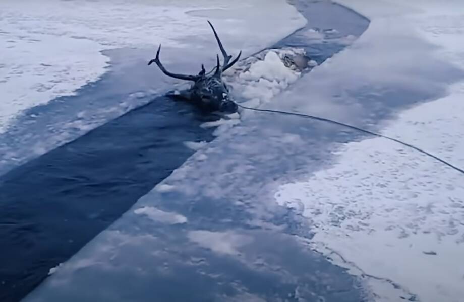 Этот самец восточноазиатского оленя угодил в ледяную воду, провалившись в полынью. Он не мог выбраться сам, но рыбаки решили вызволить изюбря. Они прорубили лед и в итоге вытянули животное. Но олень был очень слаб. Мужчины сначала растирали животное руками, положив его у костра, но поняли, что это не помогает и зверь просто замерзнет в морозную ночь. Уложив бедолагу на сани и укрыв брезентом, рыбаки повезли изюбря в ближайшее поселение, где врачи выходили оленя за пару дней. В этом же материале мы показывали, как мужчины спасли из ледяного плена дворняжку, которая оказалась волком!