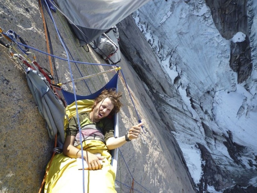 Восхождение по отвесной скале может занять не один день, поэтому перерывы на отдых приходится устраивать прямо в процессе.