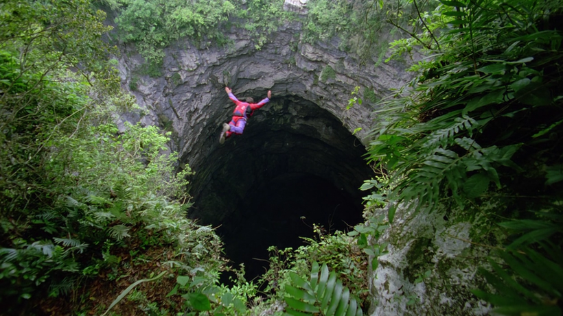 На этом кадре запечатлен итальянец Ули Эмануэле, совершивший опаснейший полет в вингсьюте, к которому он готовился несколько лет. Бейсджампер пролетел небольшую дыру в скале, размер которой составлял всего 3 метра.