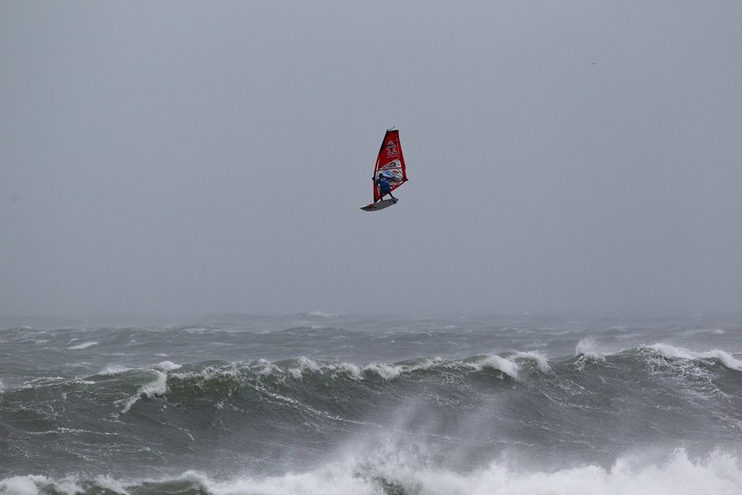 Спортсмену в ходе участия в Red Bull Storm Chase пришлось пролететь у побережья, где бушевал опаснейший шторм.