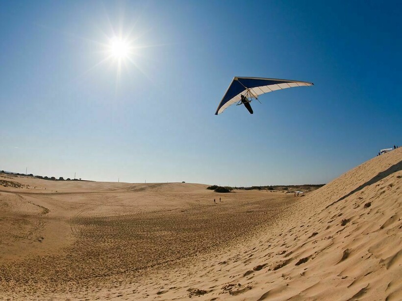 Любоваться красотой и спокойствием пустынного ландшафта можно не только снизу, преодолевая пешком километры по горячему и рыхлому песку, но и сверху. В штате Невада популярны полеты на дельтаплане и параплане над засушливым регионом.