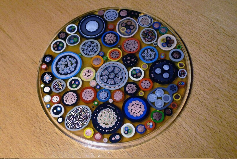Разрез различных типов кабелей, собранных в одном снимке.