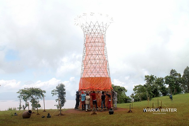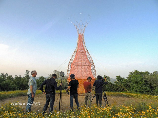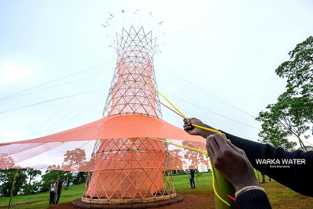 Итогом их работы стала такая вот башня, созданная из стеблей бамбука и биоразлагаемого пластика и получившая название Warka Water.