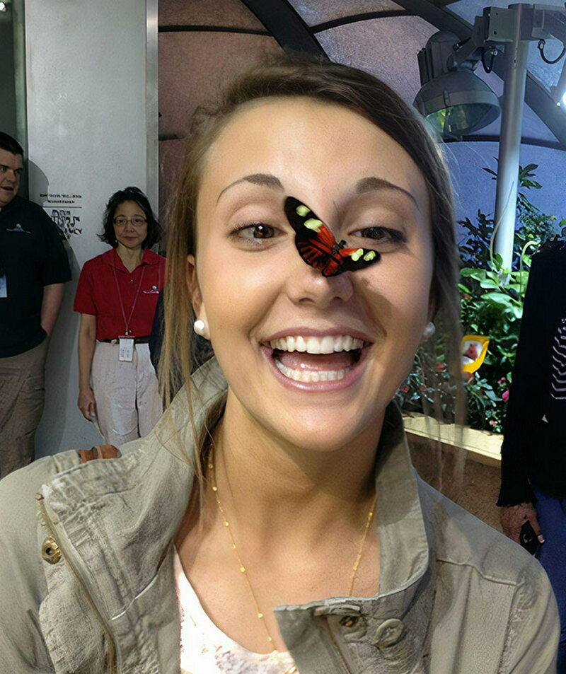 Бабочка приземлилась на нос девушке в Национальном музее естественной истории Вашингтона