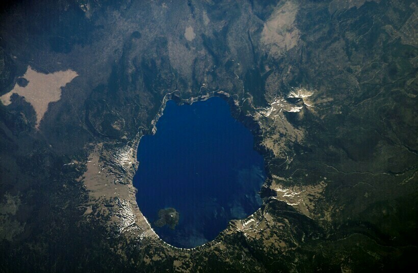 Озеро Крейтер вулканического происхождения. Ученые нашли под слоем пепла тысячелетней давности орудия труда и другие предметы, сделанные человеком. Сегодня неизвестно, сколько людей мог погубить вулкан Мазама, извергаясь, но то, что люди жили в этой местности издревле, — факт. В результате извержения образовалась кальдера, которая со временем наполнилась дождевой и талой водой: ни одна река в озеро не впадает и ни одна из него не вытекает. На сегодняшний день глубина озера в самом глубоком его месте доходит почти до 600 метров, а его размеры на поверхности составляют 8 км на 9,7 км.