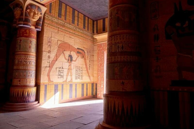 Здесь есть и древнеегипетский храм, украшенный иероглифами