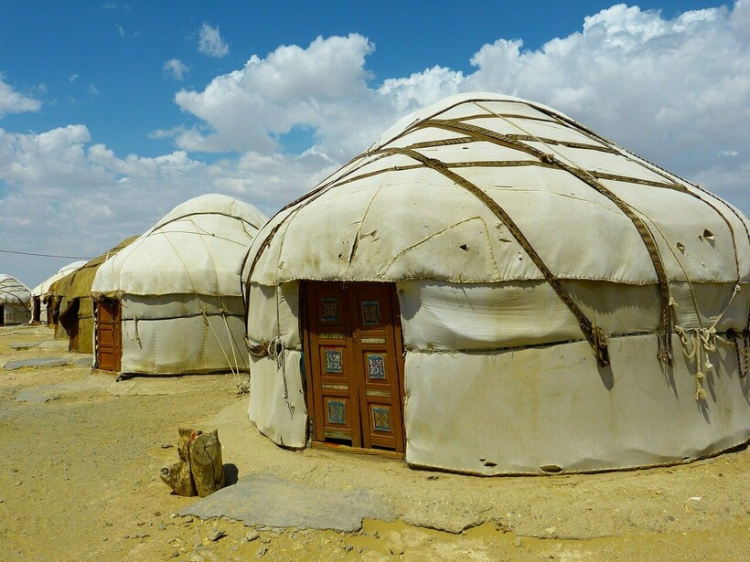 Юрта, или, как ее называют монголы, гэр — круглая палатка, которая состоит из разборного деревянного сооружения и накинутого сверху плотного войлока. Юрты легко устанавливаются и разбираются при переездах. Кстати, они даже сегодня используются в качестве жилья многими людьми в сельской Монголии. На самом деле в современном турецком языке «юрта» является синонимом «родины». В отличие от походной палатки, юрта функционирует как настоящий дом, защищая жителей от непогоды, но при этом достаточно простая по конструкции, чтобы соответствовать кочевому образу жизни. В центре юрты есть место для дровяной печи и дымохода, который зимой сохраняет в юрте тепло. Традиционные юрты украшены узорами с изображением различных культурных символов и священных традиций. Современные юрты в Центральной Азии до сих пор имеют эти важные исторические образцы.