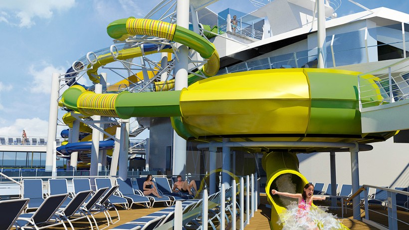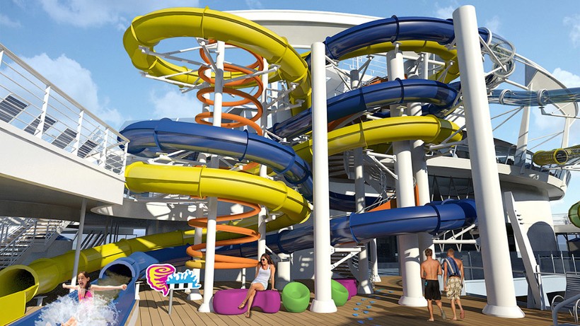 Скучать на корабле не придется. Здесь работают казино, театр, прекрасные кафе, рестораны, бары с роботами-официантами, аквапарк с водяными горками, скалодром и еще много всего интересного.
