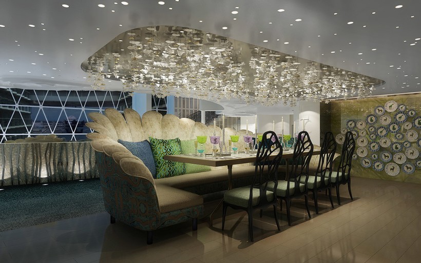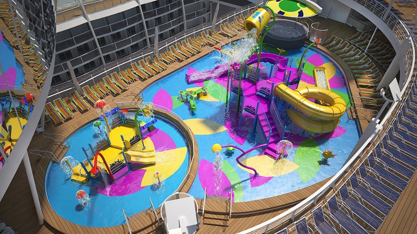 На борту обустроено 2747 кают и 18 палуб, есть 23 плавательных бассейна, а также ботанический сад, где произрастают деревья и более 10 тысяч растений.