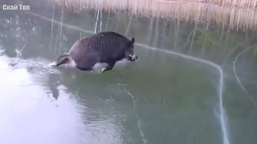 Нет такой ситуации, в которой дикий кабан чувствовал бы себя неуверенно. Обычно этот зверь уверен в себе. Однако лед может перечеркнуть всю уверенность. Кабанчик из этого видео случайно оказался на льду, и его копыта моментально начали скользить. Как назло, рядом оказались люди, которые сразу же начали снимать происходящее на камеру. Кабан всеми силами пытался поскорее скрыться от людей, чтобы не сгореть со стыда. С горем пополам кабанчик смог добраться до берега и скрыться в неизвестном направлении.