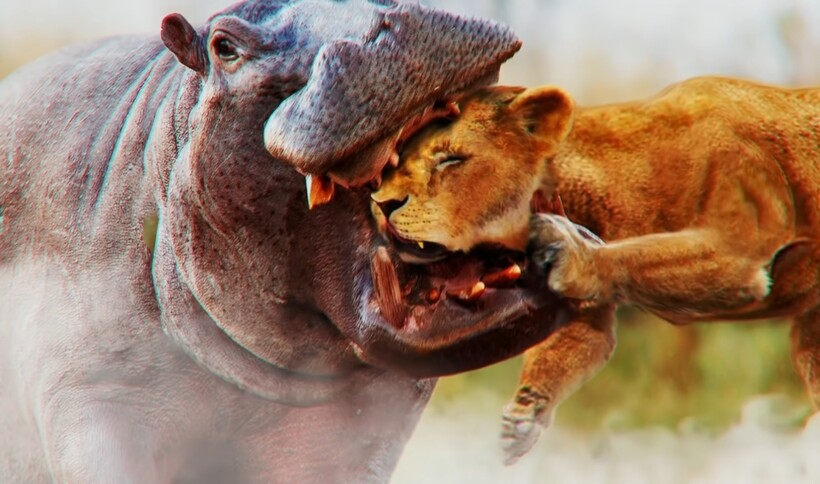 У бегемотов показатели убойности выше, чем у всех других крупных животных. На суше гиппопотамы ничего не боятся. Самки могут постоять за себя, в то время как самцы будут бороться за установление господства в своей группе. Несмотря на то что бегемоты живут группами до 40 особей, они могут быть очень территориальными и агрессивными по отношению к сородичам в их районе. Самцы часто сражаются друг с другом за доминирование в группе, и победитель забирает самку для спаривания. На этих крупных животных в воде могут позариться лишь нильские крокодилы, которые охотятся в основном на молодых бегемотов, но по возможности также не брезгуют взрослыми особями. Кстати, здесь мы рассказывали, почему бегемот — самое опасное животное Африки.