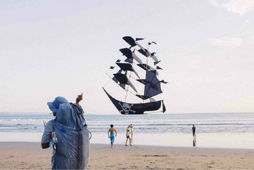 Многие, впервые взглянув на этот снимок, видят пиратский корабль в море. Но это всего лишь красивый воздушный змей, идеально попавший в кадр. Он словно идет по воде!