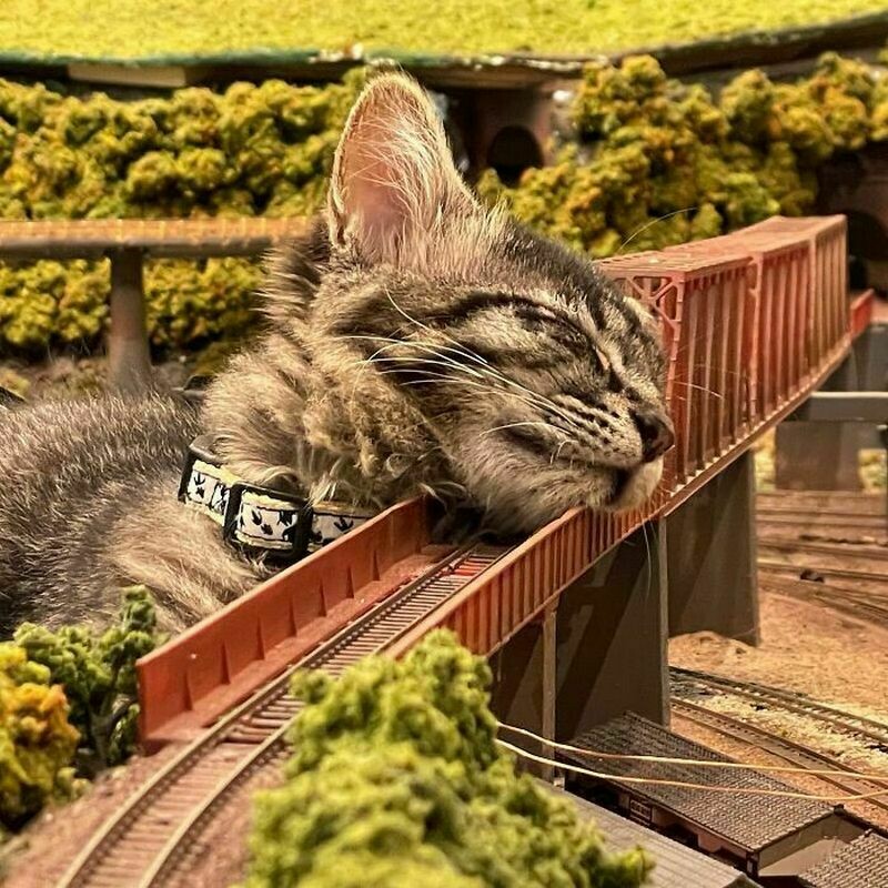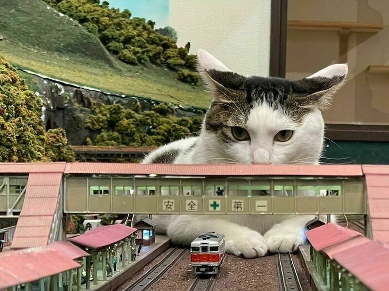 Дело в том, что кошки чувствовали себя настолько комфортно в заведении, что даже начали расхаживать среди миниатюрных моделей поездов. Это выглядело очень забавно, словно на мир напали коты-великаны. В итоге Наоки как-то решил сфотографировать это нашествие и выложил снимок в Instagram. Ну, и вы догадываетесь, что произошло после этого?