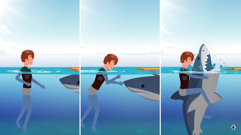 Если вам посчастливится и акула потеряет интерес, плывите так быстро, как только сможете, к берегу или в безопасное место. Если у вас рана на руке, убедитесь, что вы держите ее поднятой над сердцем, так вы остановите кровотечение. Желательно не смотреть на поврежденное место, чтобы не впадать в шок. Здесь мы писали о прототипе главного героя фильма «Выживший», который спасся от медведя.
