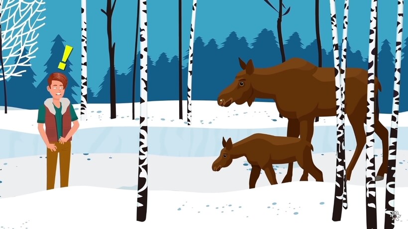 Когда лось закладывает уши назад и поднимает шерсть на своем горбе, топает по земле или поворачивается к вам, то он уже готов к атаке. Хорошая новость — от этого животного вы можете убежать. Сохатый, скорее всего, не будет бежать за вами долго. А также можно спрятаться за препятствием или вовсе залезть на дерево. Если лосю удалось сбить вас с ног, попытайтесь свернуться калачом, это защитит ваше тело от пинков. В это время лучше не подниматься с земли, иначе животное снова накинется на вас.