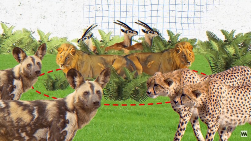 Война между животными развязалась из-за того, что сразу три естественных врага оказались на одной территории. Территория была богата ресурсами и имела выгодное географическое положение. Никто из враждующих сторон не хотел уступать. Ученые уже очень давно следили за повадками больших кошек и пришли к выводу, что они не могут терпеть друг друга. Львы специально выслеживают детенышей гепардов и охотятся на них. Таким образом львы устраняют конкурентов. По этим же причинам львы нападают на гиеновидных собак.