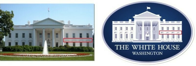 Белый дом — резиденция президентов США. Казалось бы, к созданию логотипа для такого серьезного здания следовало подойти максимально внимательно. На первый взгляд, изображение Белого дома на логотипе полностью соответствует реальному зданию. Однако, если присмотреться, можно найти некоторые неточности. Дизайнер не обратил внимание на порядок арок над окнами и расположил их неправильно.