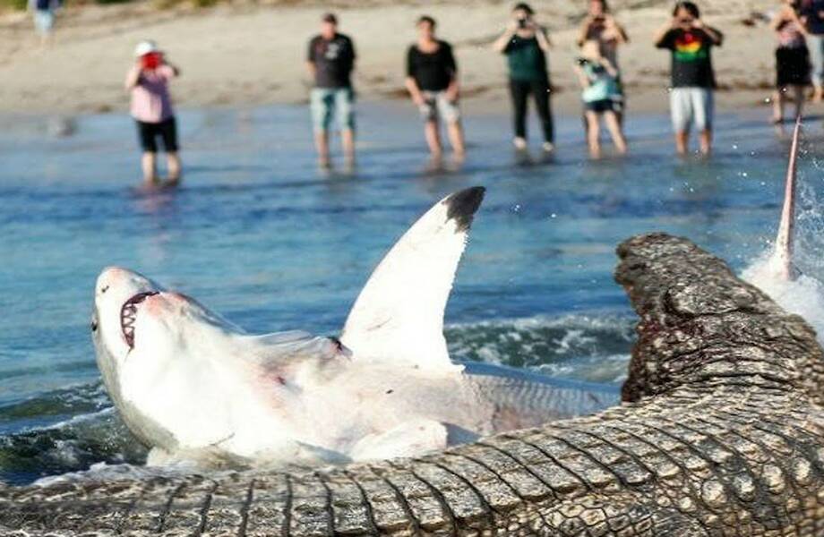 Не каждый день можно увидеть, как титаны животного мира вступают в схватку не на жизнь, а на смерть. Эти люди успели заснять момент, когда голодный крокодил, ищущий себе лакомство на полдник, поймал детеныша бычьей акулы в Северном Квинсленде. Шокирующий ролик показывает, как гигантский четырехметровый монстр жует акуленка после того, как тот попался на леску. В этом материале мы писали, почему крокодилы — это высшая ступень эволюции рептилий.