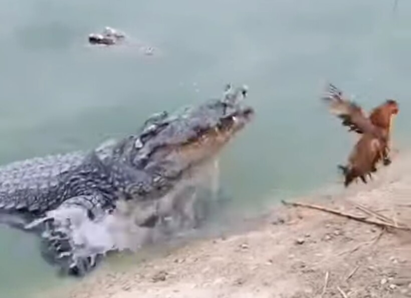Курица, вальяжно гуляющая по спине огромного крокодила, вмиг стала звездой интернета. Птица приняла рептилию за бревно, а терпеливый крокодил не стал ее разубеждать. Согласно данным иностранных источников, у этого сюжета хороший конец — когда птица подойдет на самый кончик носа «бревна», крокодил клацнет зубами, чтобы схватить ее, но птица успеет отлететь в сторону, оставив хищника без обеда. В этот раз.