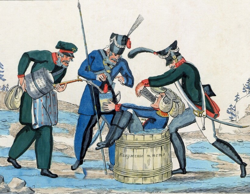 Этот уникальный десерт очень любила и знать России XVIII-XIX веков, из чего можно сделать вывод, что это лакомство завоевало популярность в стране даже раньше тульского пряника. Тесто стало одним из символов страны. Существует даже карикатура, изображающая Наполеона после поражения в 1812 году, где он падает в бочку с надписью «Калужское тесто», а из его рта торчит пряник. Рецепт теста варьировался, и в кулинарных книгах 1904 года описываются такие разновидности, как апельсиновое, миндальное, лимонное и т.д. Нужно сказать, что калужское тесто не было повседневным десертом, а считалось идеальным подарком по особым случаям, особенно ко дню рождения. Это лакомство, нарезанное на кусочки и завернутое в изящные коробки, приносило радость в любой дом.