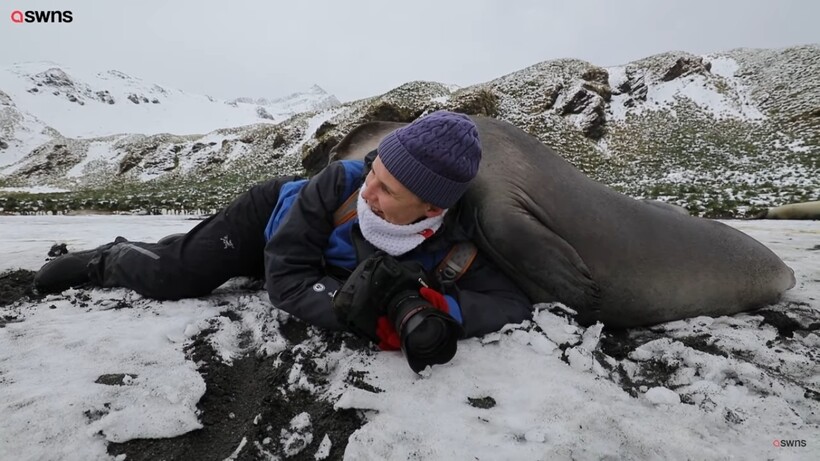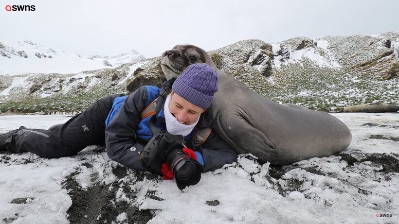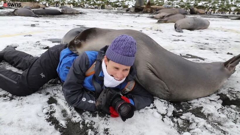 Крис Брэй участвовал в экспедиции в Голд-Харбор на острове Южная Георгия в Южной Америке. Крис — фотограф дикой природы, который живет на острове Рождества в Австралии. Он и его жена поехали туда, чтобы запечатлеть группу королевских пингвинов. Когда они все-таки наткнулись на них, произошло нечто более удивительное. Морской котик ласково плюхнулся на жену Криса Джесс Тонтон. А в этом посте можно увидеть, как тюлень расцеловал дайвера.