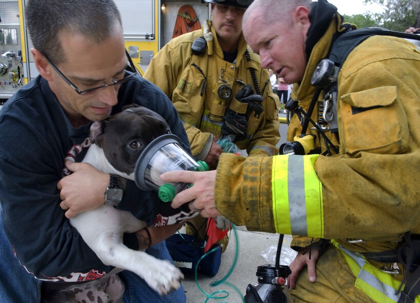 Часто домашних животных выносят из очагов возгорания без сознания, и им требуется немного свежего воздуха, как и людям.