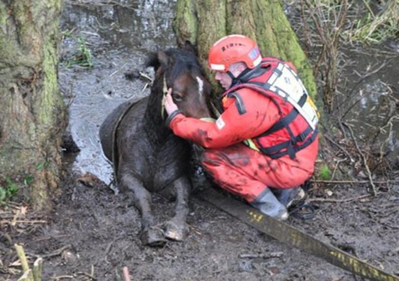 Эта кобыла попала в трясину недалеко от фермы, пролежав там всю ночь, прежде чем на утро владельцы заметили пропажу животного и сделали обход ближайшей территории. Сотрудникам британской службы спасения потребовалось немало времени, чтобы вызволить беднягу.