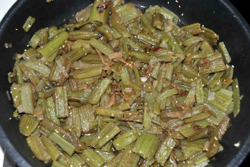 На Сахалине растет много лопуха, так почему бы не сделать из него фирменное блюдо? Просто, полезно и вкусно. Сахалинцы делают салат из стеблей растения. Для этого они замачивают ростки лопуха на ночь, затем кипятят их, снимают кожицу и нарезают брусочками. Дело остается за малым — обжарить, добавить соевый соус, любимые пряности и тушить до готовности.