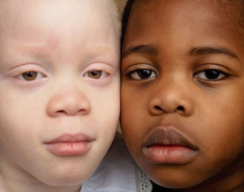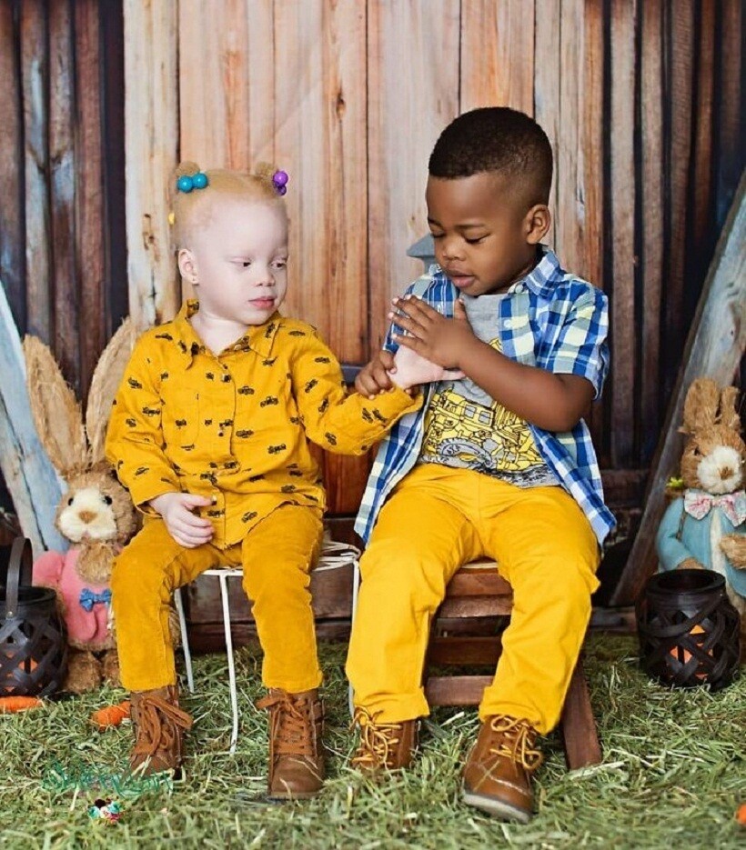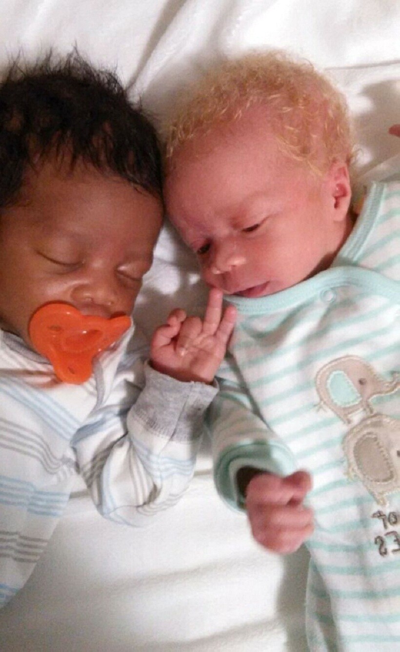 Мальчик был похож на маму, а девочка появилась на свет с белоснежной кожей и такими же волосами.